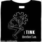 This “I Tink Therefore I am” shirt is our wearable Steampunk account of Auguste Rodin’s famed statue “The Thinker”, and the fundamental philosophical element from renowned scholar René Descartes, “I Think Therefore I am.”