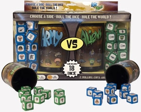 Alien invasions have never been as fun as the Army vs. Aliens dice rolling game! Gather your friends, divide into two teams, and find out who really comes out on top in alien warfare—earthly soldiers or out-of-this-world extraterrestrials. Wanna be an alien?